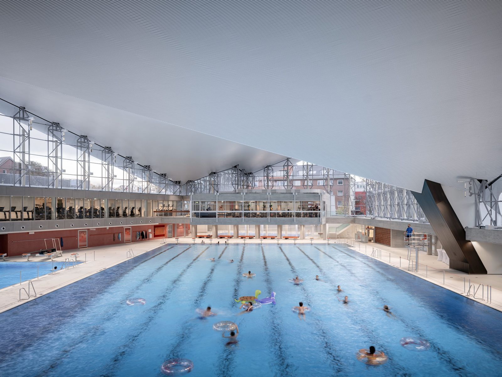 From 2020 to 2023, the Alsterschwimmhalle was extensively renovated, converted and extended. The spectacular shell roof, the enormous interior with the 50-meter pool, and the facade construction were retained. At the same time, the sports facilities were comprehensively redesigned for the first time and supplemented with contemporary additions. Almost everything under the roof had to be modified in order to allow its visionary gesture from the 1970s to remain unchanged.