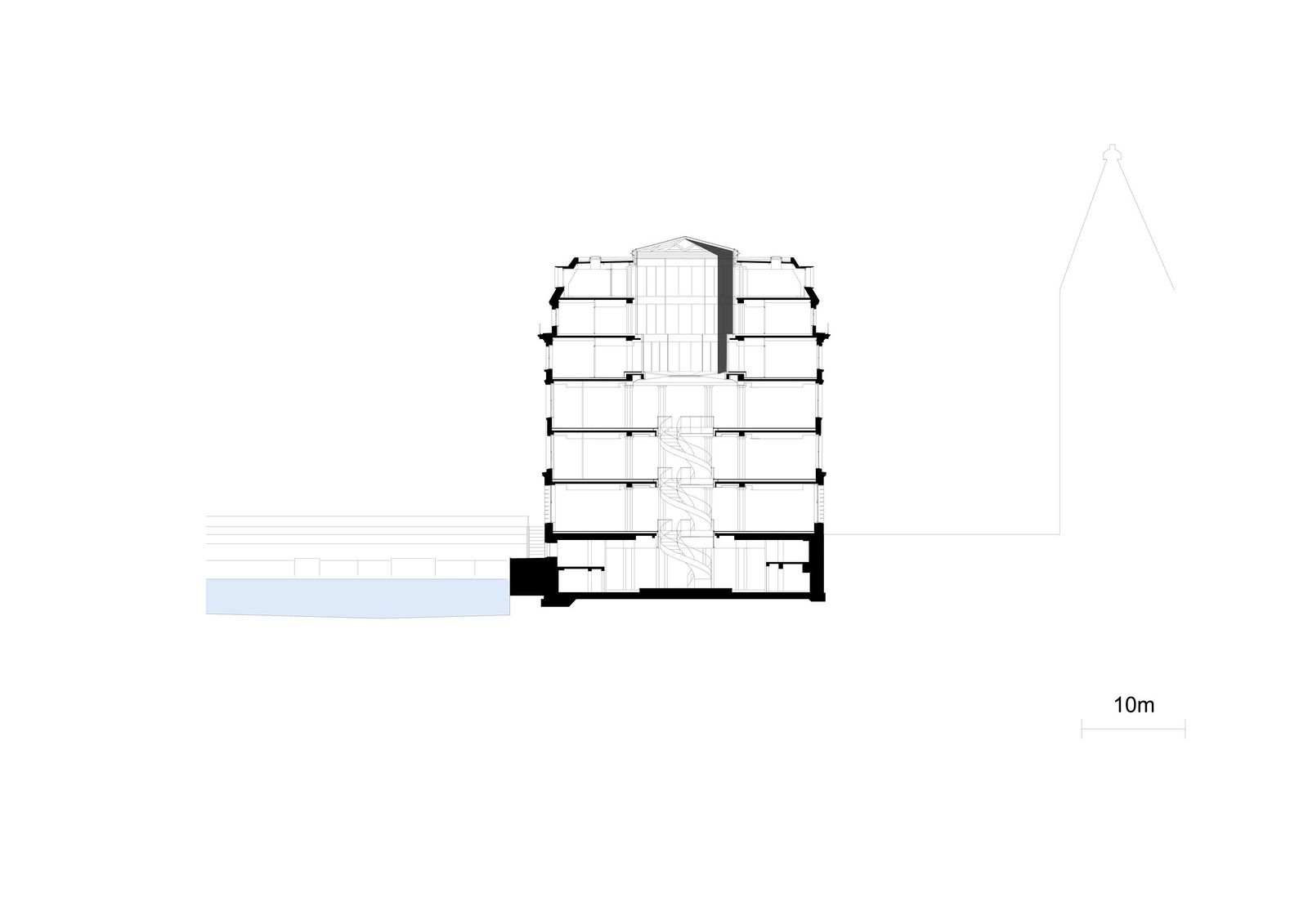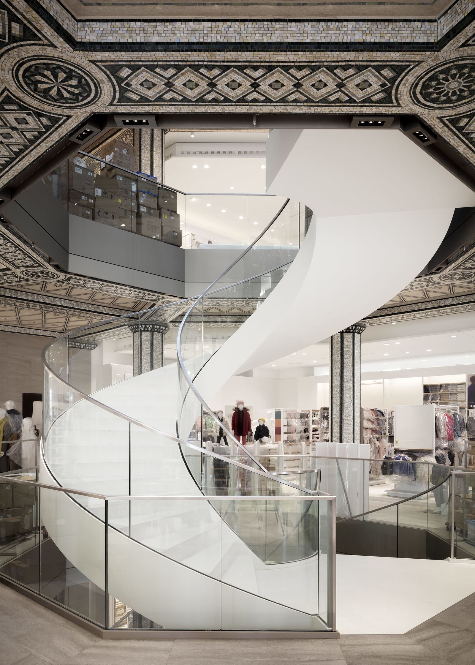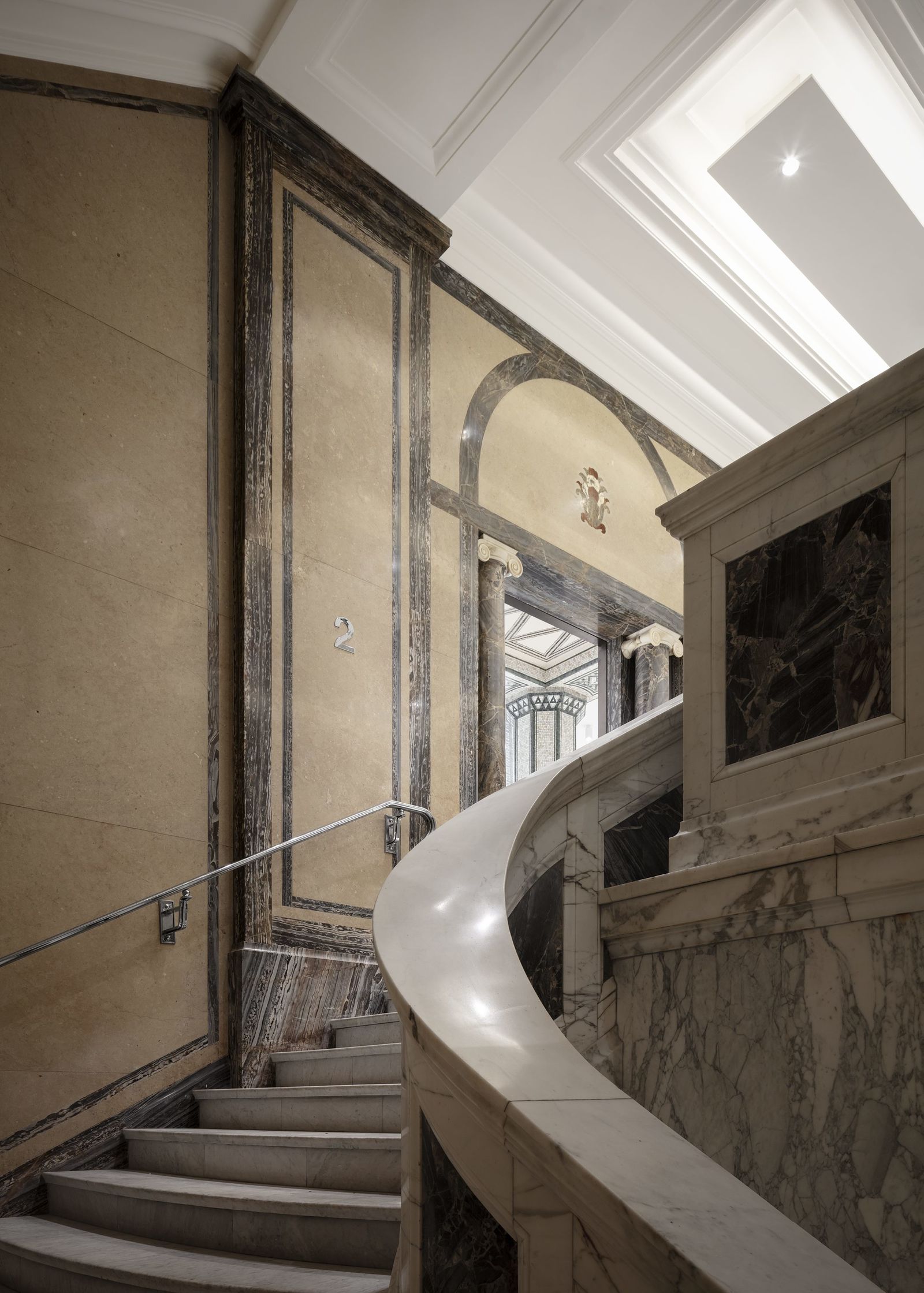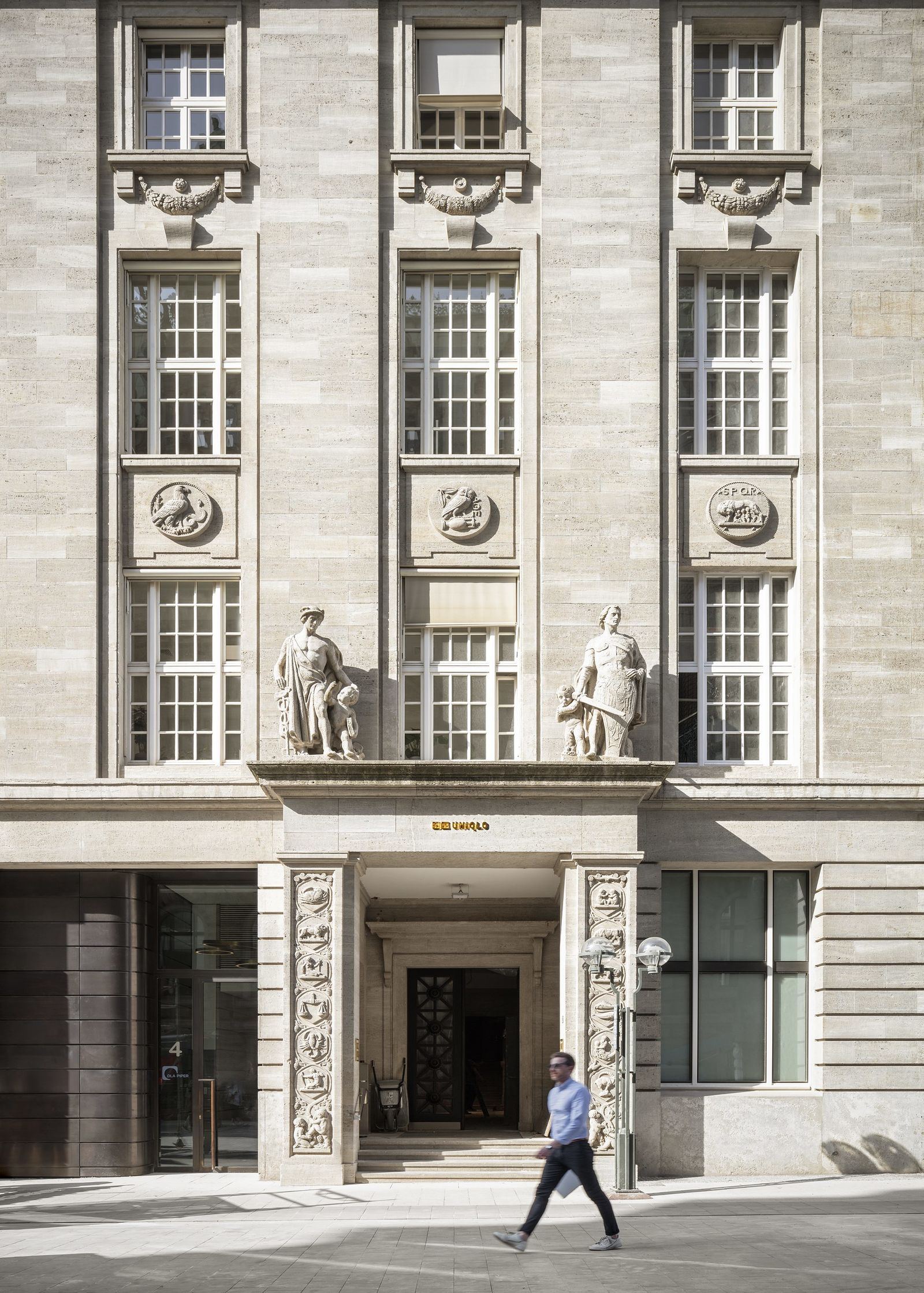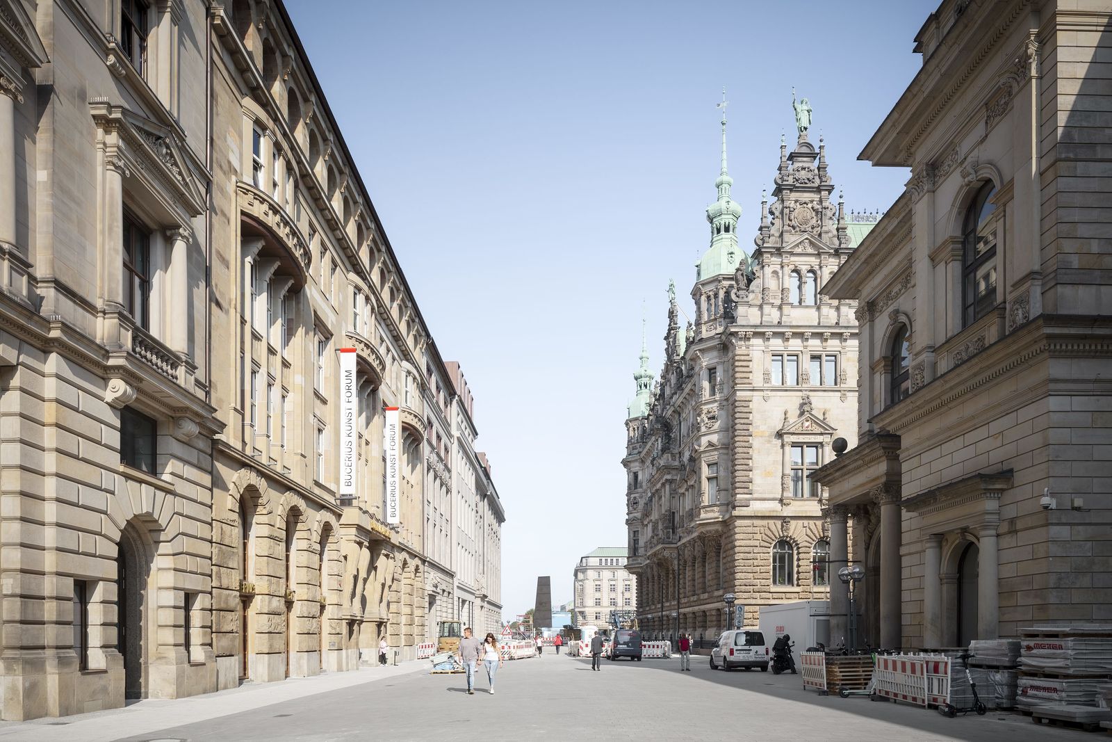 The previous home of the Bucerius Kunst Forum, the building with the neoclassical facade facing Rathausmarkt, has been completely preserved and will be lavishly restored in the second phase of construction. A retail store on four levels will occupy the former spaces of the art museum.