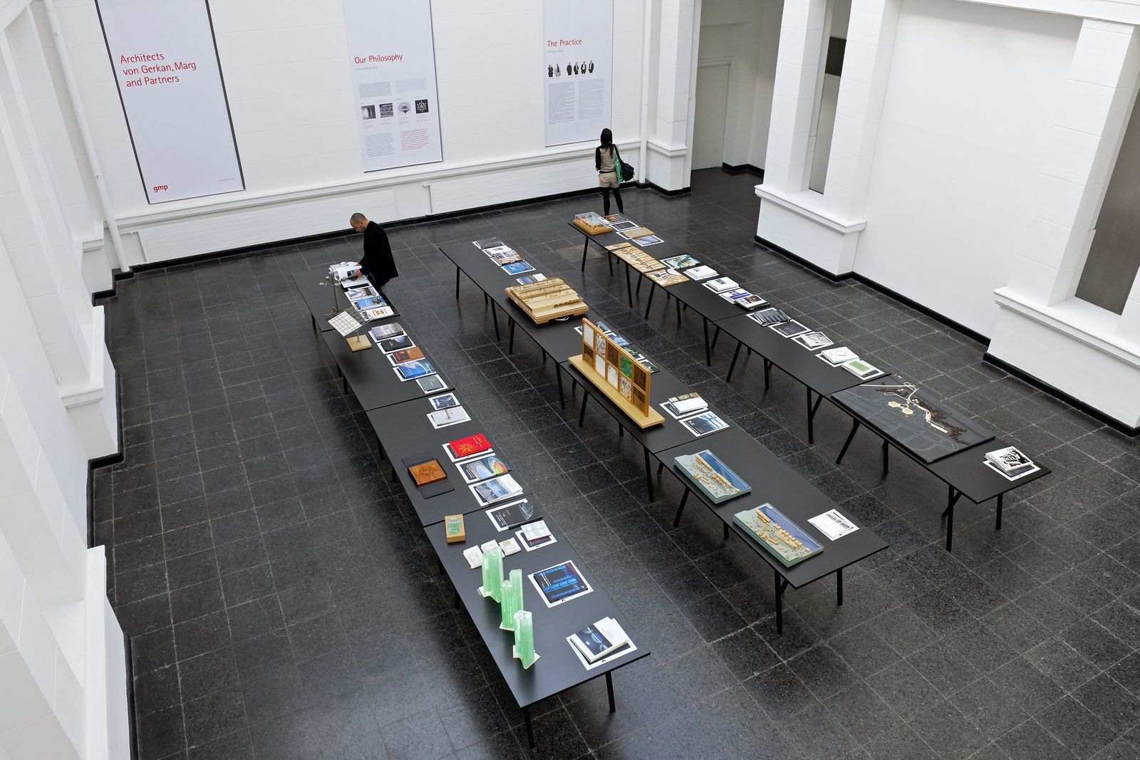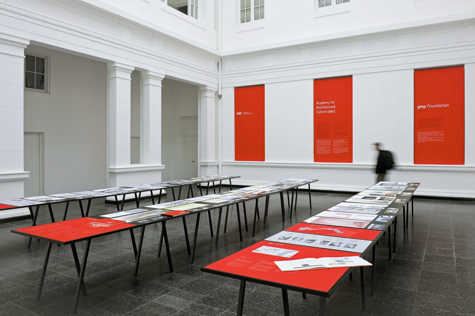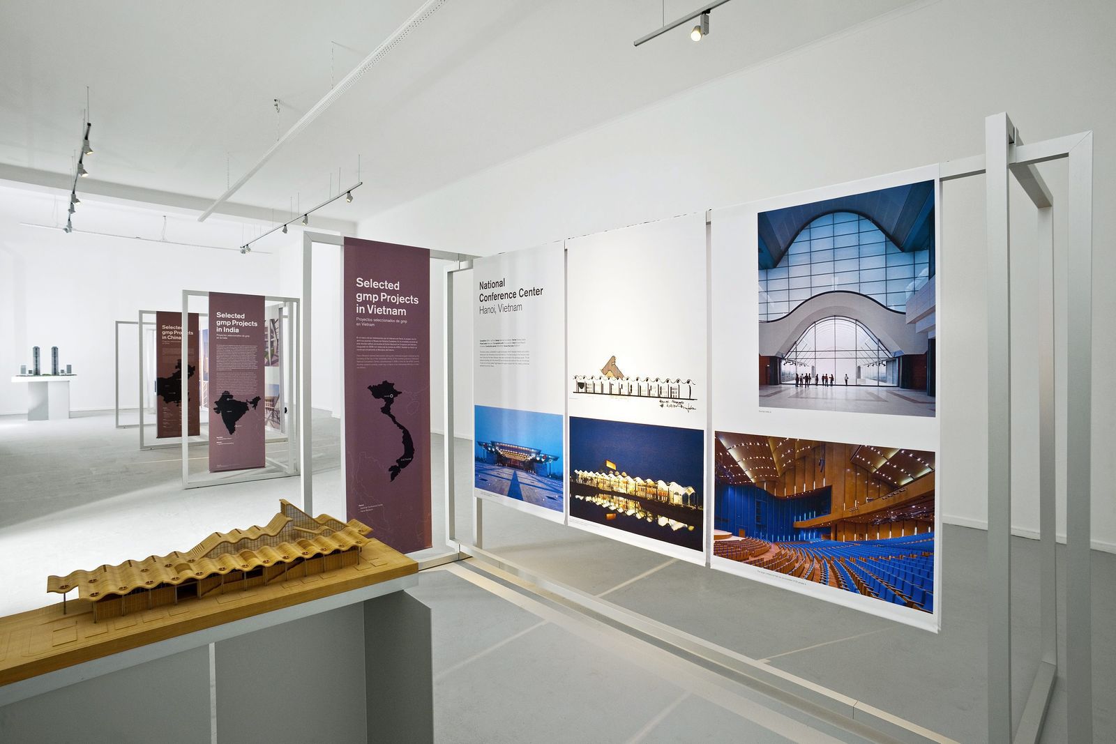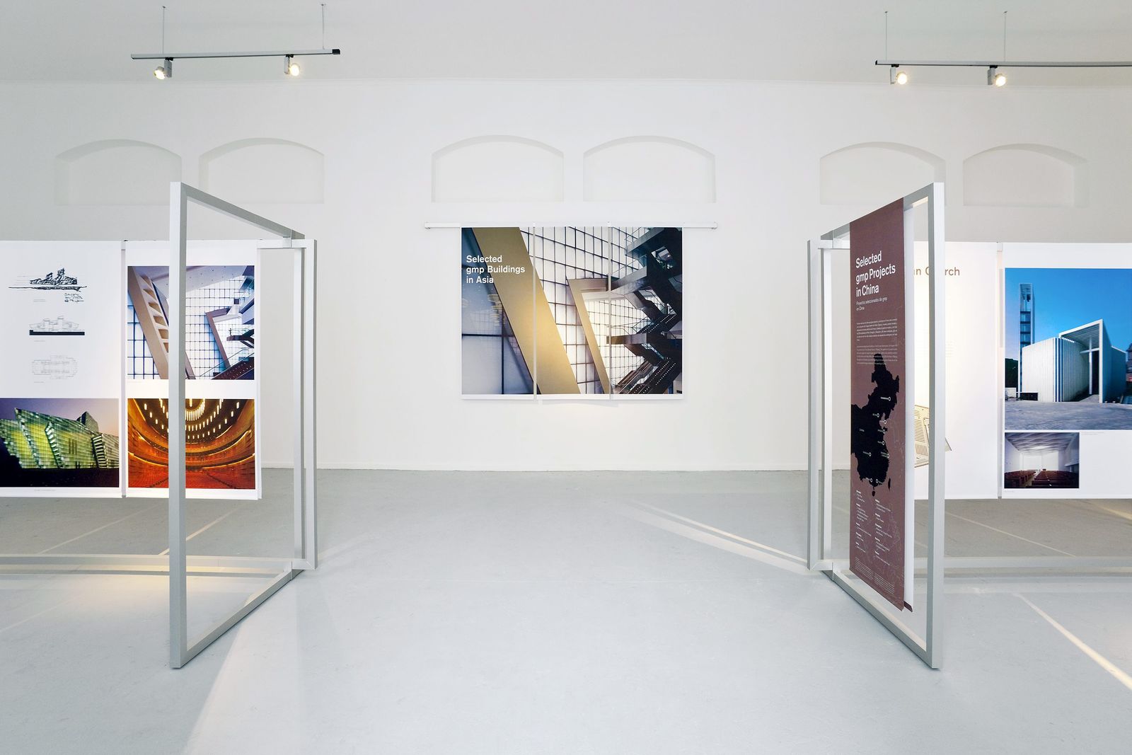 Auf über 1000 m² präsentiert das Architekturbüro nicht nur über 30 weltweit realisierte Projekte in bewegten und unbewegten Bildern sondern auch eine ausführliche Darstellung der Geschichte des Büros von Gerkan, Marg und Partner sowie der 2008 von gmp gegründeteten Architekturakademie "aac Academy for Architectural Culture".