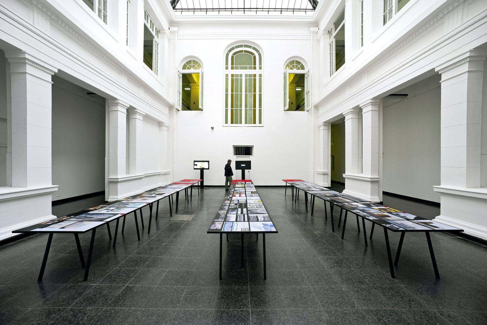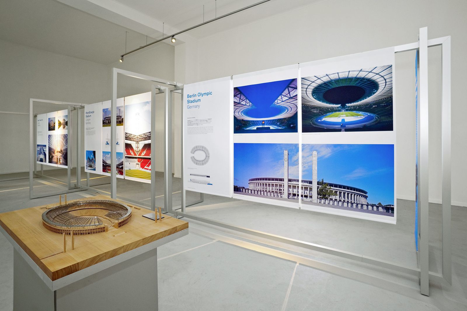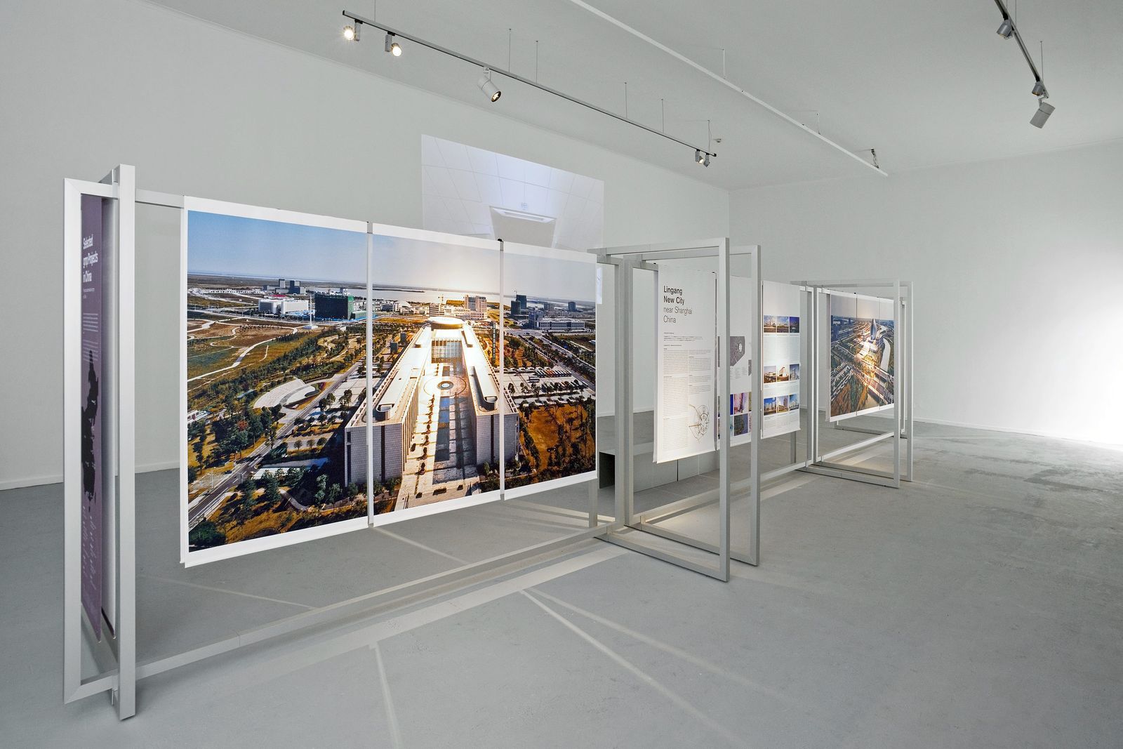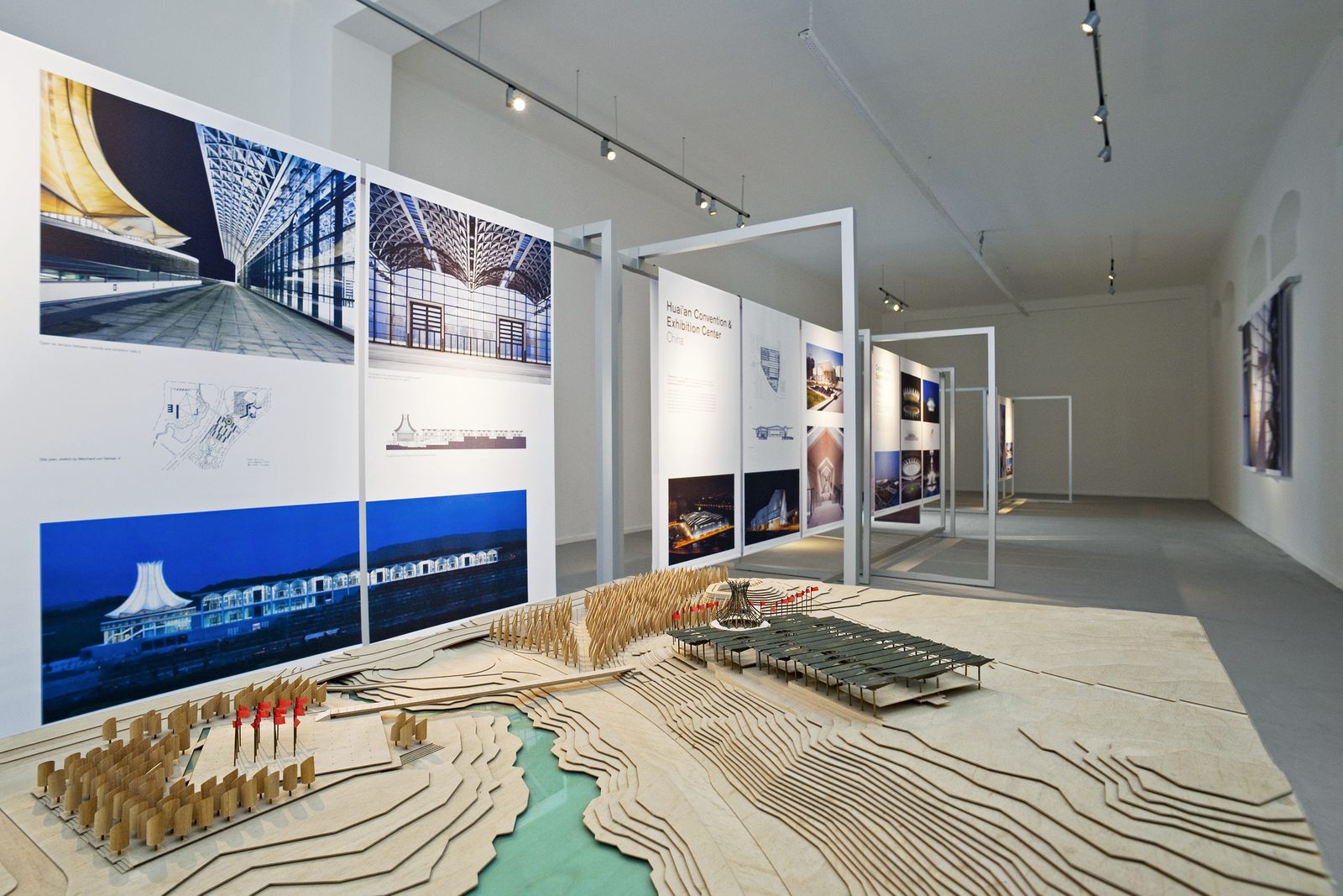 Auf über 1000 m² präsentiert das Architekturbüro nicht nur über 30 weltweit realisierte Projekte in bewegten und unbewegten Bildern sondern auch eine ausführliche Darstellung der Geschichte des Büros von Gerkan, Marg und Partner sowie der 2008 von gmp gegründeteten Architekturakademie "aac Academy for Architectural Culture".