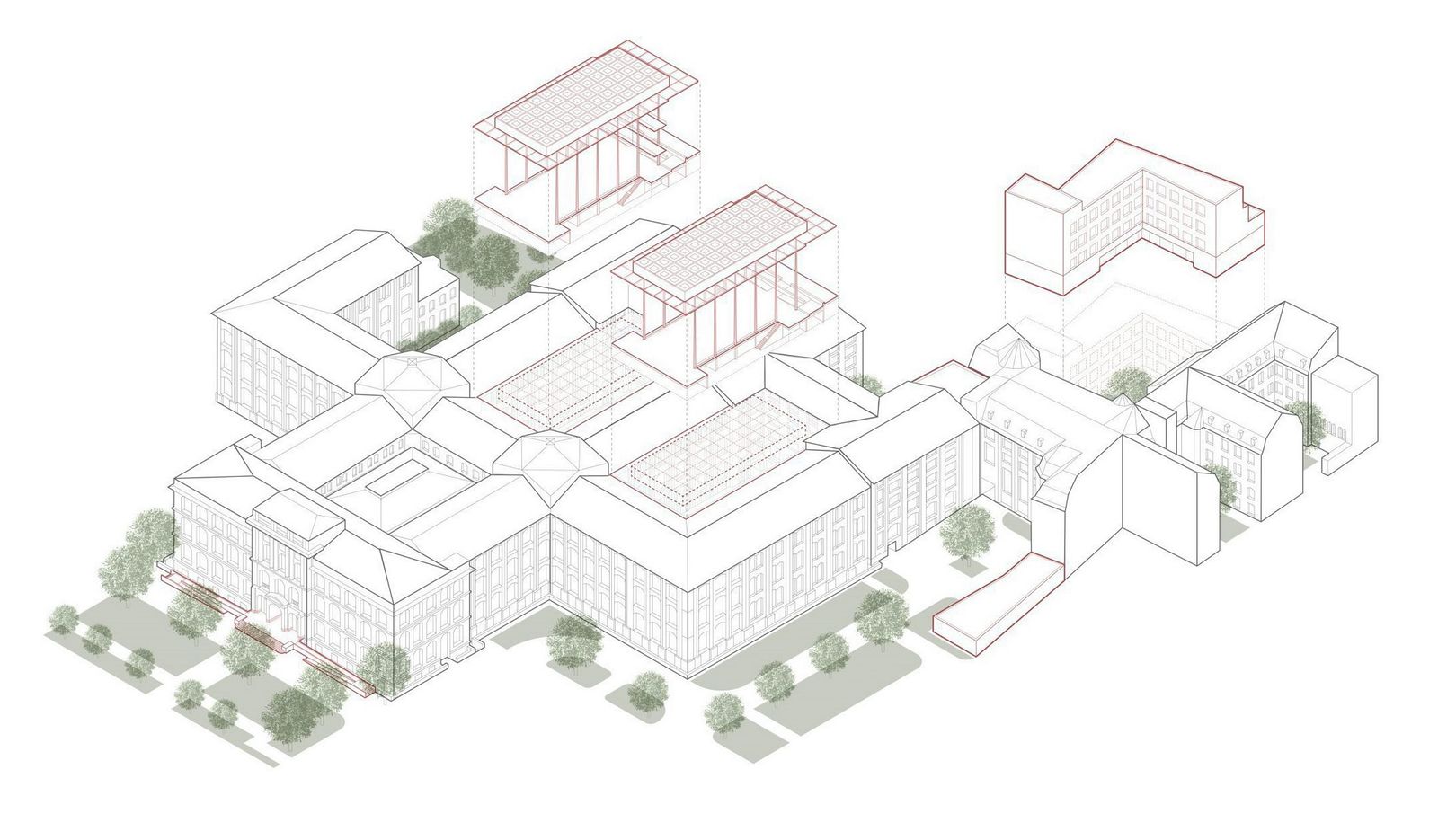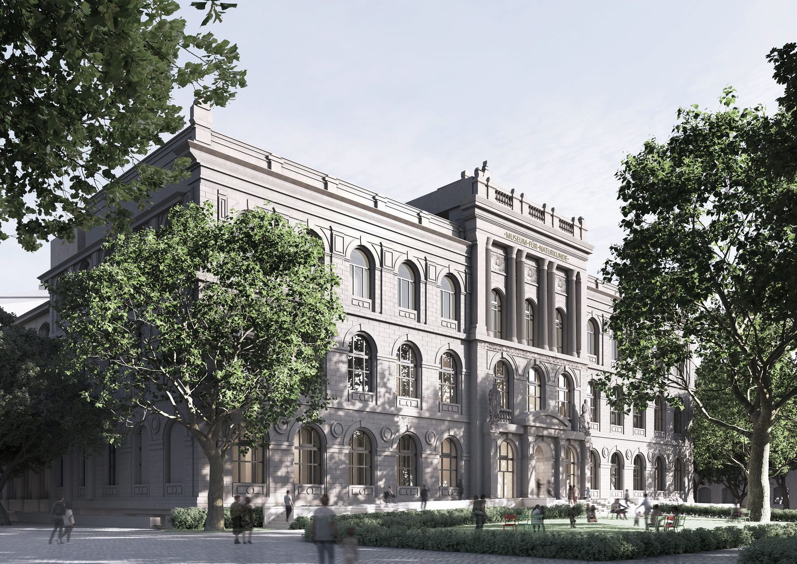 In the years to come, the Museum für Naturkunde in Berlin will continue developing as an open and integrated research museum. The competition’s brief was to repair and refurbish the listed ensemble, including the outdoor facilities, in line with building preservation principles; also to establish barrier-free access and to provide new spaces for exhibition, collections, and research. The design by von Gerkan, Marg and Partners Architects (gmp) in cooperation with Rainer Schmidt Landschaftsarchitekten includes new roofs over the two inner courtyards, which makes it possible to upgrade the visitor infrastructure.