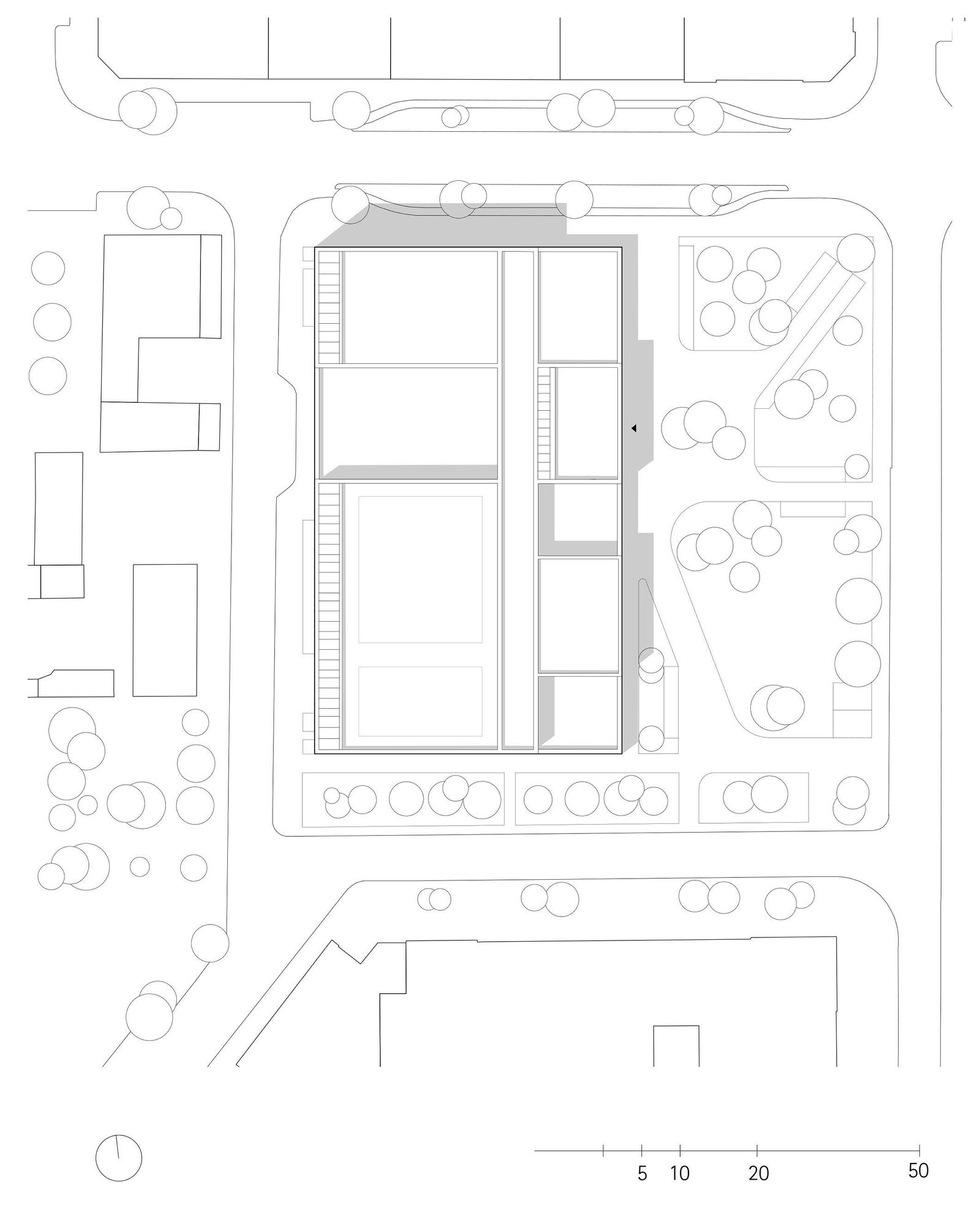 Otto-Runki-Platz lies in the Neustadt-Neuschönfeld part of the city to the east of Leipzig’s inner city and hitherto has served as a public park. To the north of the plot, the two building blocks have a direct border with Eisenbahnstrasse and thus form a spatial edge along the main traffic axis. To the south-east, the development of the swimming pool and health center creates a landscaped open space, which integrates some of the existing trees. The central planted circulation axis between the two buildings widens out to a landscaped plaza, which leads on to the Rabet public park.