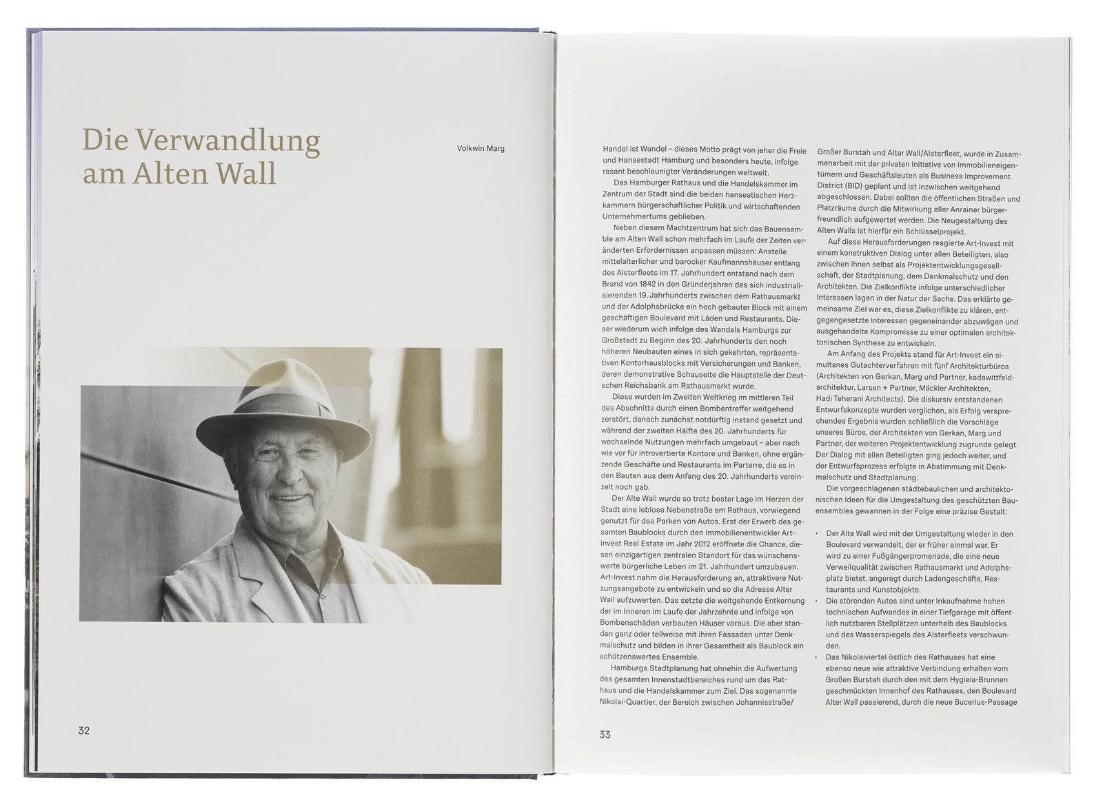 In front of and behind the historic facades at Alter Wall 2-32, a new piece of the city has been created in the heart of Hamburg's city center, which ties in with the history of the location. Once part of the fortifications, then a vibrant city boulevard, the street next to the town hall and stock exchange fell into disuse after the Second World War. In 2020, the slumber came to an end: with the opening of stores, cafés, offices and one of the city's most important museums, life returned to the converted, listed building block. The conversion turned the historically grown diversity into a new unity - in the built reality as well as in this book.