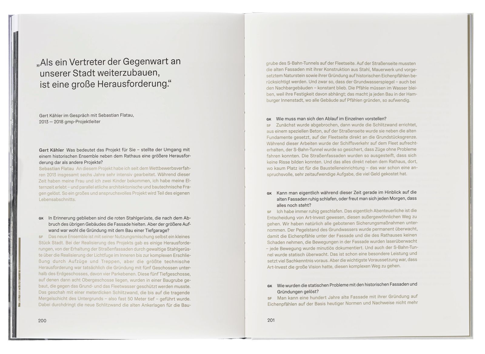 Between two book covers, it brings together the perspectives of those involved in the project, the users and those responsible from around ten years of project history. Photo series document important stages of the construction process and the completed building. The richly illustrated book illuminates the entire project from the different perspectives of the client, monument protection, urban planning and architecture against the background of the historical development of this prominent part of Hamburg's city center.