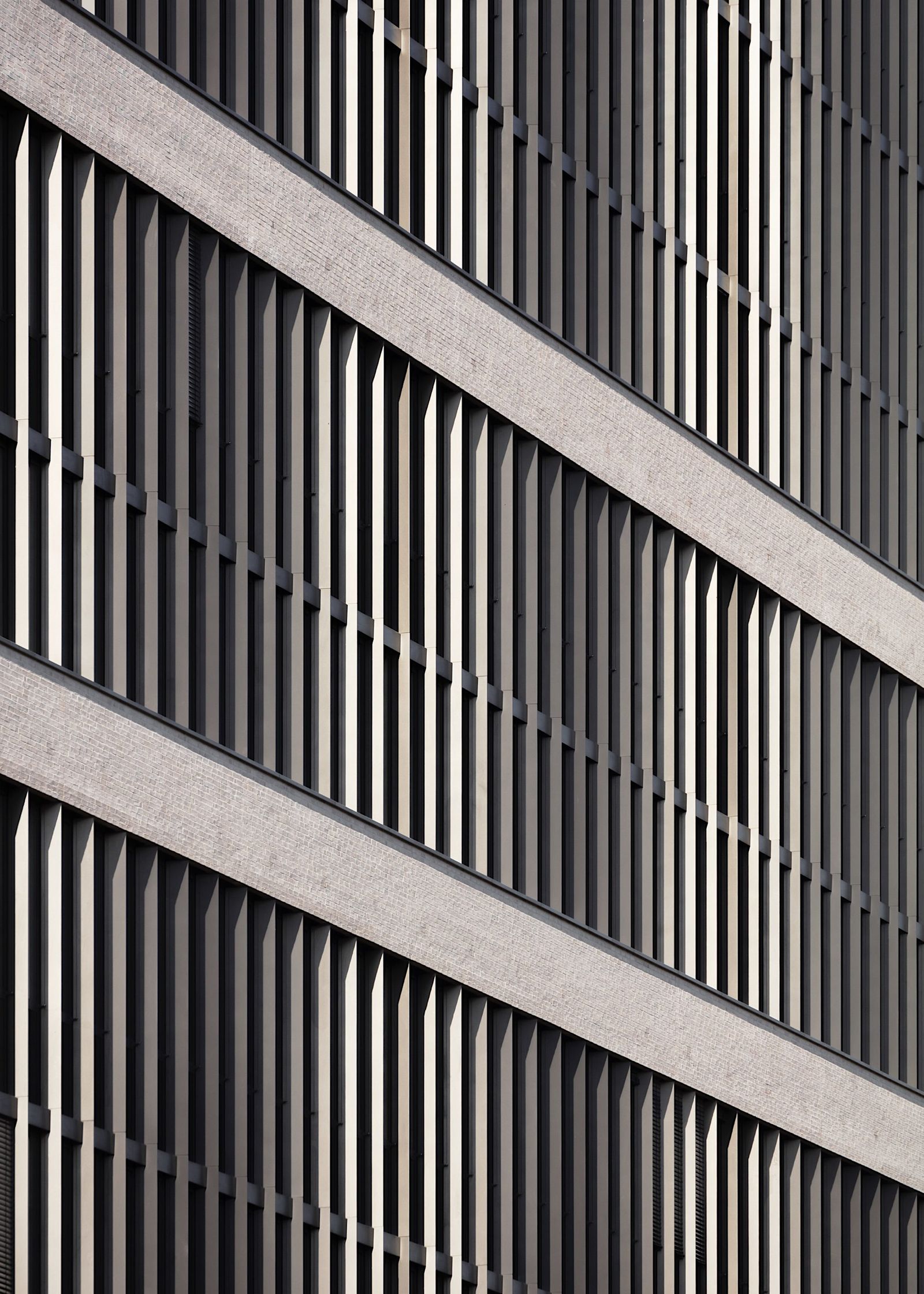The urban area of City Süd, which was previously designated an industrial and commercial area, is developing into a dense mixed-use zone with more distinct urban design features. With its brick facades, typical of this Hanseatic city, the new campus creates succinct urban spaces at Heidenkampsweg and the adjacent streets. The new development occupies an entire urban block that was previously occupied by a fairly random mixture of commercial units. The ensemble consists of three distinct volumes that reflect the size and rhythm of the neighboring buildings. Eleven-story blocks line Heidenkampsweg and Wendenstrasse whereas the buildings along Sachsenstrasse have seven stories. The block development creates four landscaped inner courtyards that are used as quiet rest zones as well as providing outside seating space for the Olympus staff restaurant.