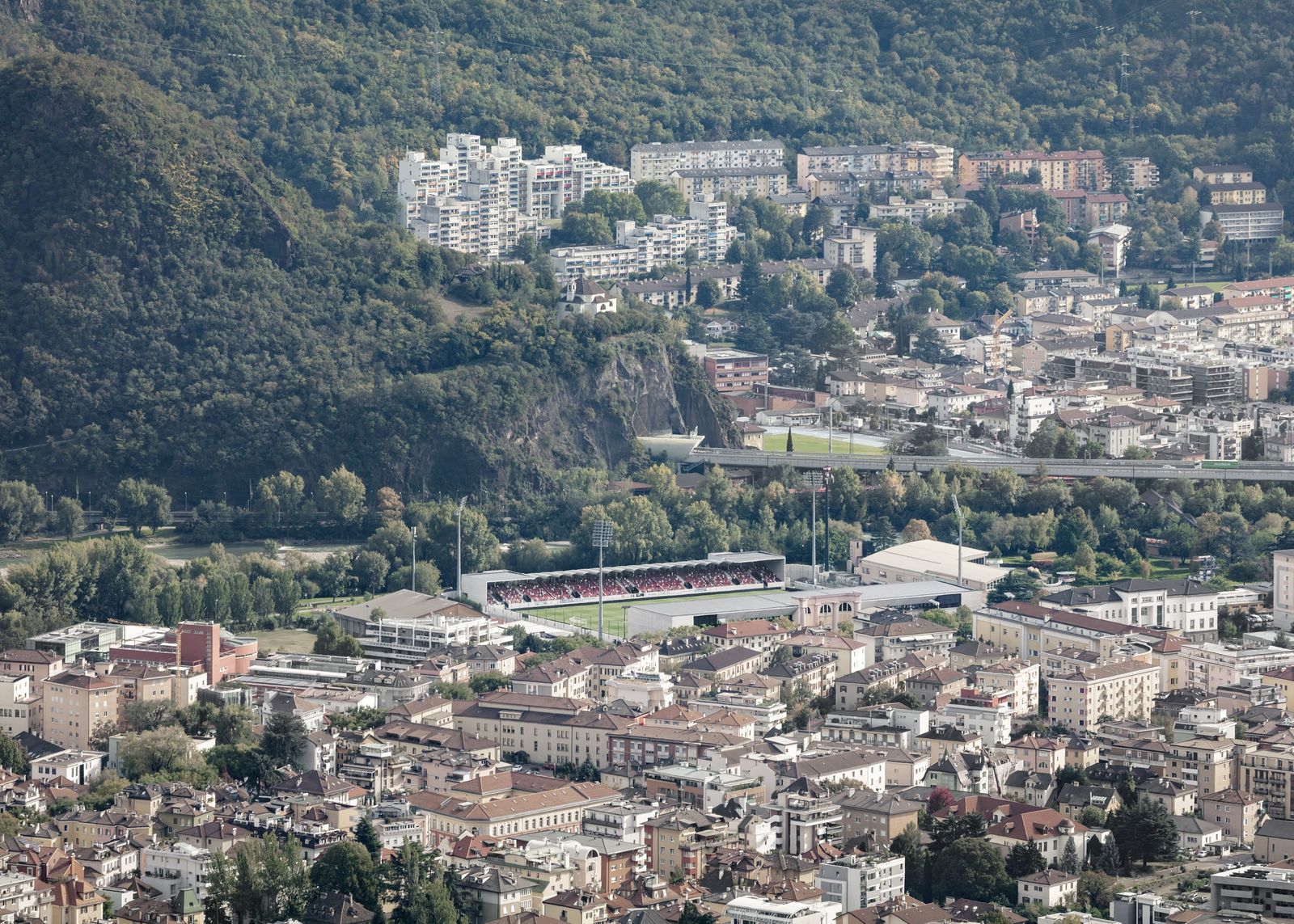 南蒂罗尔省和博尔扎诺市投资了约1500万欧元,对这一建于1936年的体育场进行改造,使之符合当今职业足球赛事的标准。这里是南蒂罗尔足球俱乐部球队的主场。尽管该俱乐部落户于博尔扎诺,但认为自己代表整个南蒂罗尔州,并在一年前晋级意大利乙级联赛。为了满足乙级联赛标准,体育场馆需要进行全面翻新。第一施工阶段先对体育场进行了翻新,坐席数从3100个增加到5500个左右。为此将两个看台进一步扩展,使之延伸至赛场边缘。德鲁萨斯体育场的原有历史建筑部分尽可能地保留下来,但全新的绿茵赛场按照意大利足球联赛的规定可升温加热,因此在冬季也可使用。