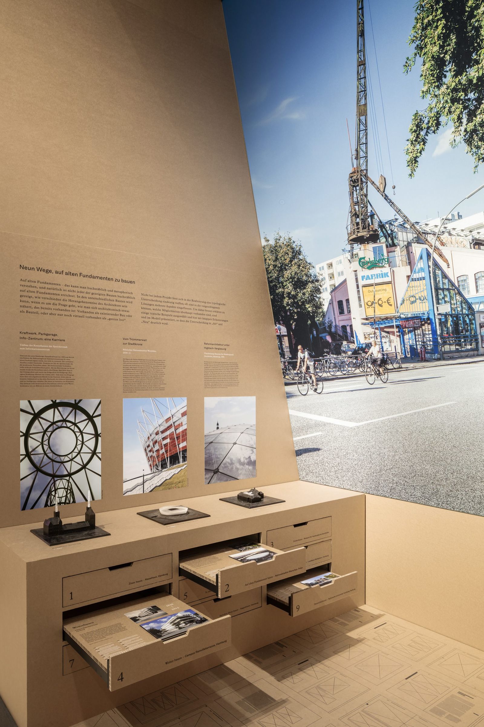Draped in architectural cloaks of different designs, two rooms emphasize the duality that is characteristic of Volkwin Marg’s story: the "rational" and the "emotional" occupy complementary positions with numerous diverging accents and references that highlight the many layers of his oeuvre. The architect’s world of ideas – the rational approach – opens the discussion in the first room, whilst emotional expanse and freedom is the subject of the second exhibition area. Whereas, in the first room, pragmatism is documented in images and films as well as in lectures, essays, interviews, and manifestos, the second room comes to life with large projections and exhibits that reflect Marg’s world between heaven and earth. Thus the anniversary exhibition focuses on the perspective of an architect who, during his journey, was keenly aware of cultural and political influences and declared them the critical basis of his creations, resulting in an interdisciplinary approach to architecture.