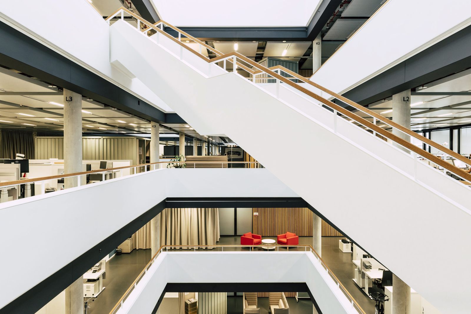 In enger Zusammenarbeit mit Audi schuf gmp eine moderne Arbeitswelt, die bestimmt ist durch einen innovativen Designprozess, der die Vorteile moderner CAD-Visualisierung mit denen eines klassischen Modells vereint. Laut Mario Linke, Chef des Audi Design-Managements, schätzen die rund 750 Mitarbeiter am Standort insbesondere die offenen und transparenten Strukturen sowie die klare Innenraumgestaltung. Die funktionalen Zusammenhänge werden im Arbeitsalltag als gelungen wahrgenommen. Dank der klaren räumlichen Gliederung der Großraumbüros in Home-Base Zonen mit persönlichen Arbeitsplätzen und in Kommunikationsbereiche, stehen konzentriertes Arbeiten und Gedankenaustausch miteinander im Einklang. Es entstehen Grenzen, die intuitiv akzeptiert werden. Lichthöfe schaffen zusätzlich eine natürliche Distanz zwischen den Zonen und scheinen die Räume aufzulösen.