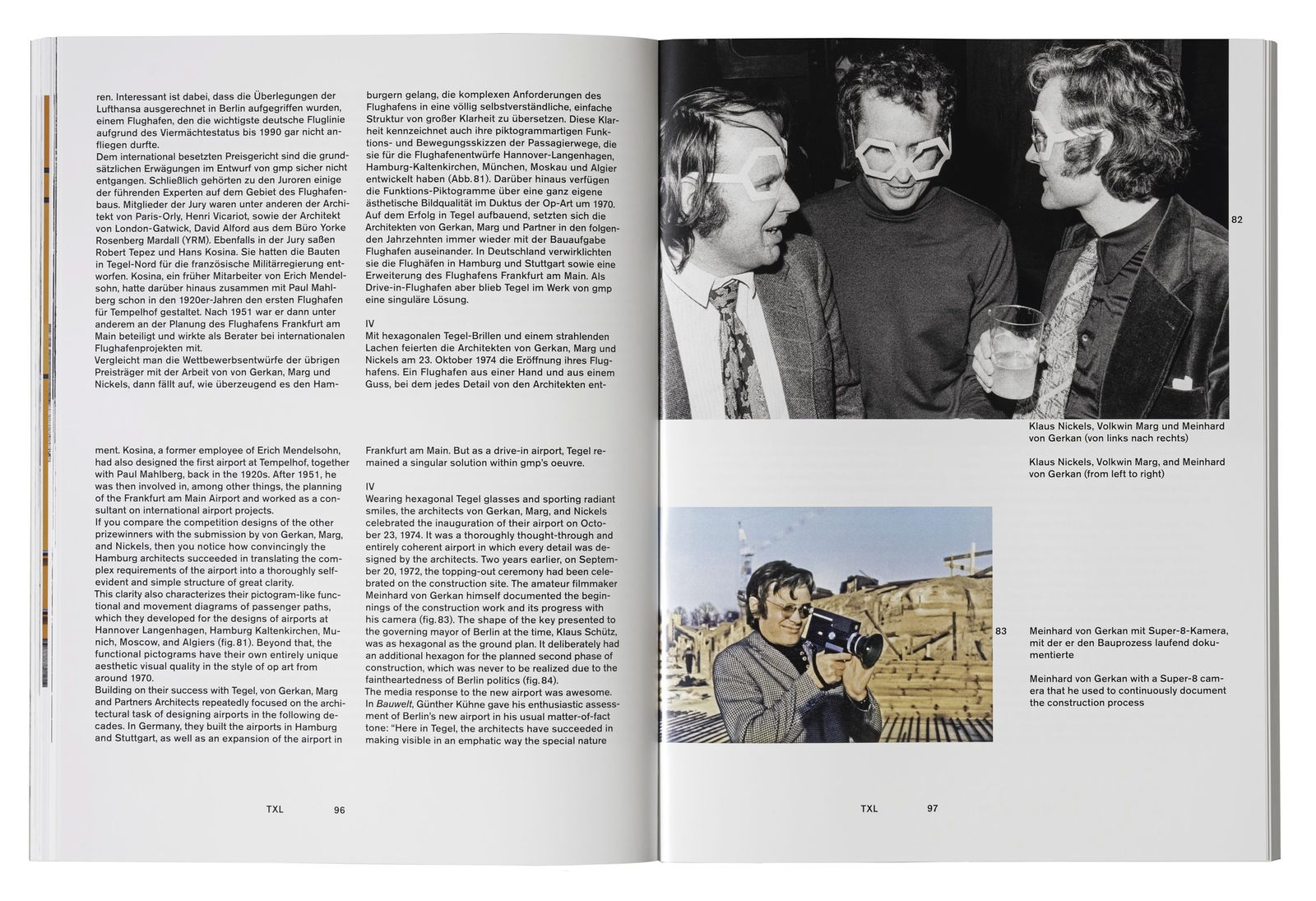 Berlin-Tegel TXL ist der Flughafen der kurzen Wege, eine Ikone der modernen Architektur. Mit seiner markanten sechseckigen Form und dem Prinzip des Gate-Check-in hat Tegel Luftfahrtgeschichte geschrieben. Tegel, das war das heiß geliebte Fenster der ummauerten Inselstadt Berlin (West) in die weite Welt. Zugleich steht der Flughafen am Beginn der Erfolgsgeschichte von gmp. Zusammen mit Klaus Nickels gewannen die gerade frisch diplomierten Hamburger Architekten 1965 den Wettbewerb für den 1974 eröffneten Flughafenneubau. Zahlreiche historische und aktuelle Fotografien sowie Planmaterial aus dem gmp-Archiv illustrieren das Gesamtkunstwerk Tegel, seine knalligen Farben und die konsequente Gestaltung, die von der Großform bis zu den Abfertigungsschaltern mit ihren abgerundeten Ecken reicht. Ausführlich erläutern Meinhard von Gerkan und Volkwin Marg die Geschichte ihres Frühwerks. Ergänzt wird das Buch durch einen Essay von Jürgen Tietz zur besonderen Qualität des denkmalgeschützten Flughafengebäudes und seiner zeitgeschichtlichen Bedeutung.