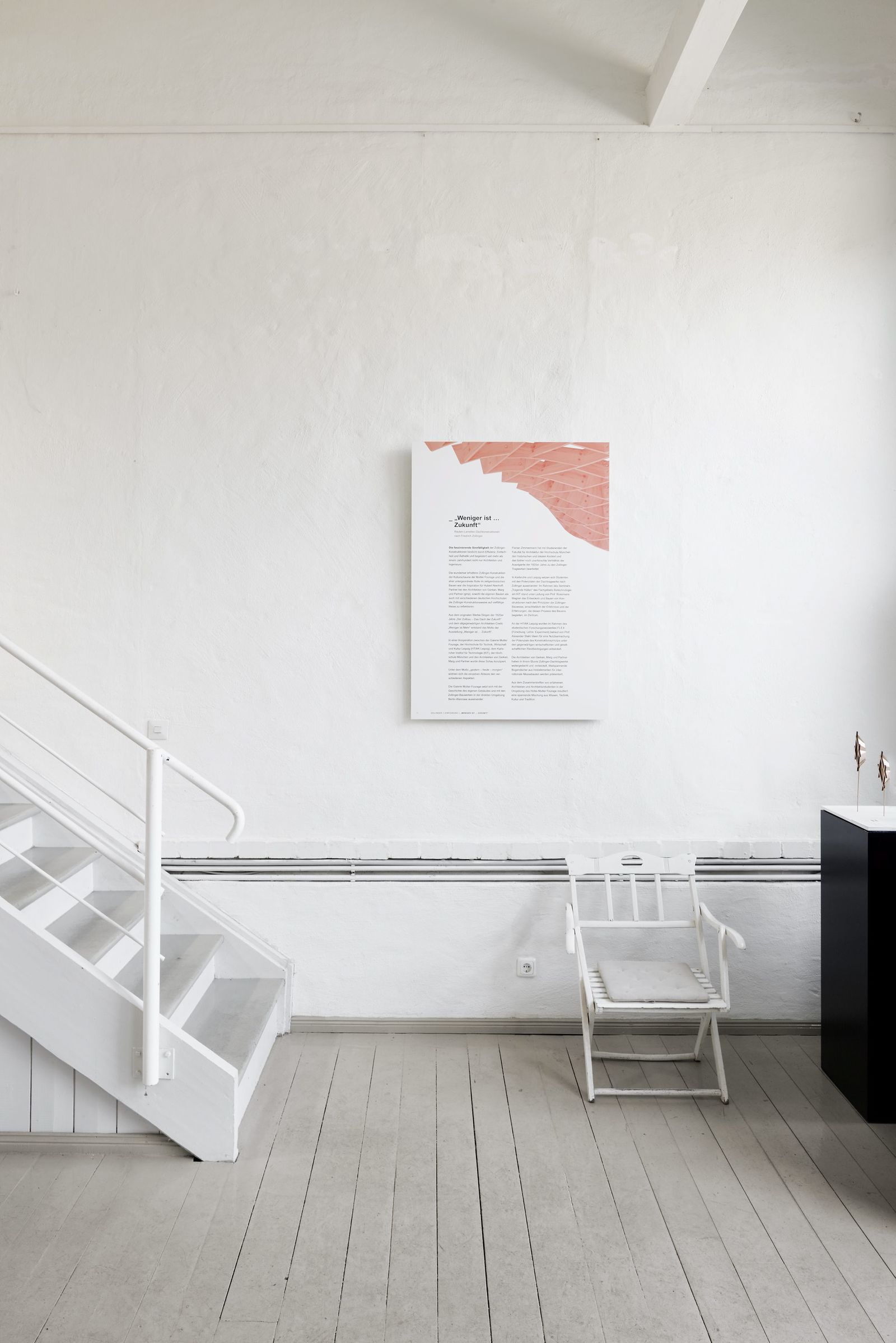 Das 1924 gebaute und seit 2012 denkmalgeschützte Zollingerdach der Kulturscheune Mutter Fourage ist Gegenstand dieser Ausstellung. Die vielseitigen Möglichkeiten und Formen, die die Bauweise des Architekten und Konstrukteurs Friedrich Zollinger bietet, sind beeindruckend und überraschend. Jahrzehntelang vergessen, informiert die Ausstellung über Zollingerdächer von den 1920er Jahren bis heute und zeigt anhand von Modellen, Fotos, Plänen, Entwürfen und interaktiven Präsentationen Vorteile und Möglichkeiten einer ökonomischen