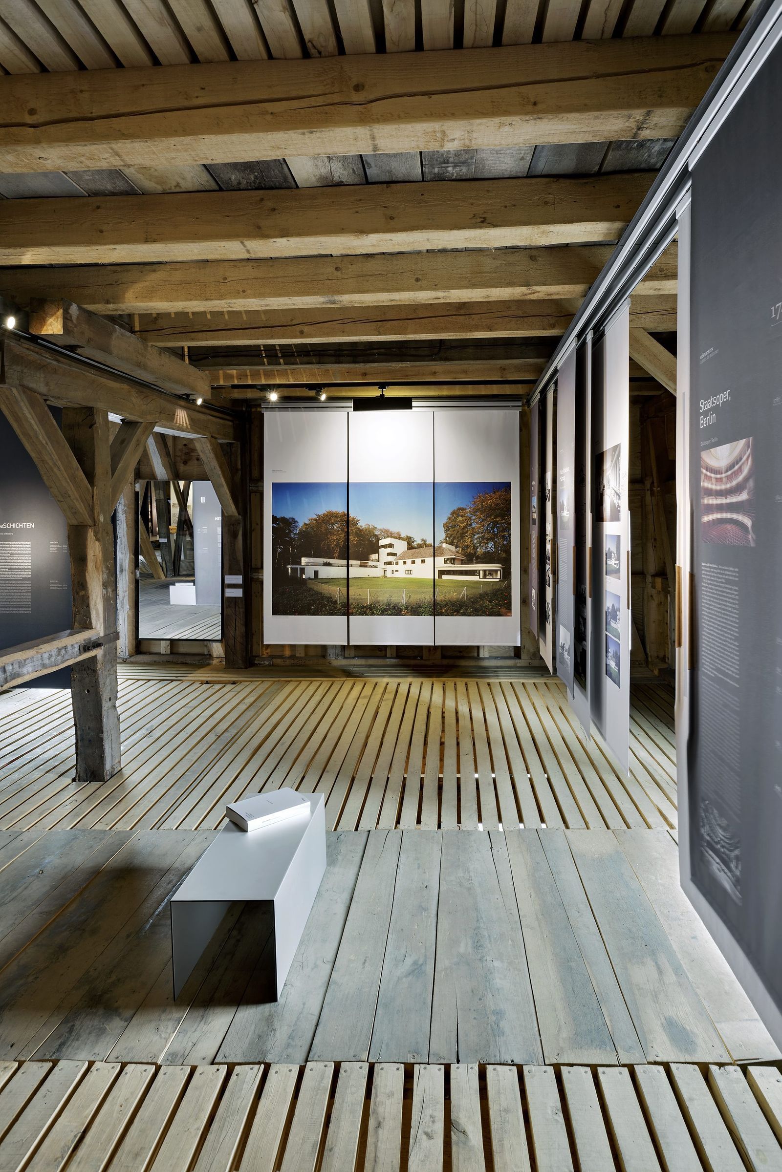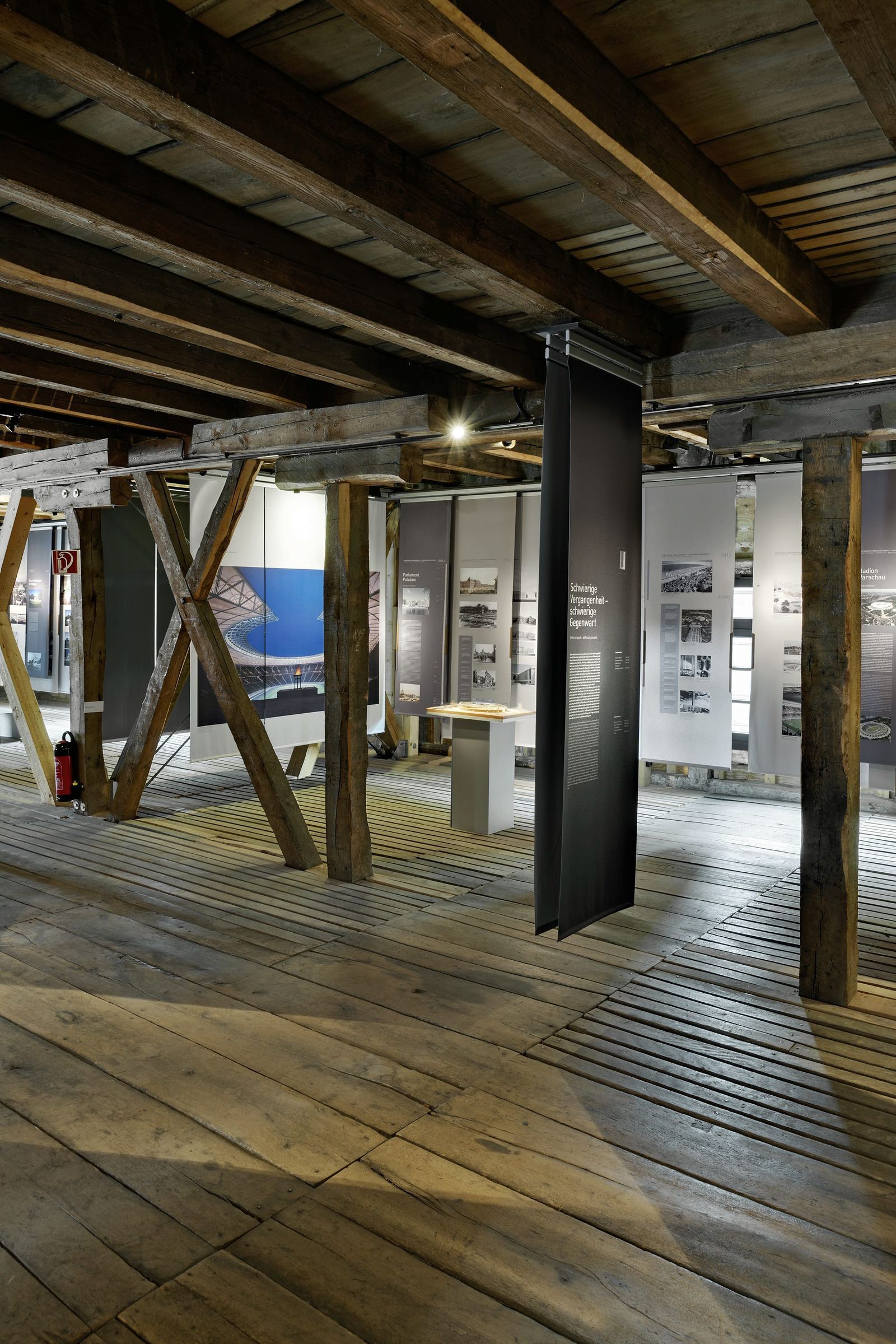 In einer Hommage an das Fagus-Werk werden in vier Kapiteln insgesamt 17 Projekte gezeigt, die ganz unterschiedliche Geschichten haben. Das betrifft nicht nur den denkmalpflegerischen Umgang (Haus Michaelsen, Hamburg), sondern auch formale Reaktionen auf eine Umgebung (Parkhaus in der Hamburger Speicherstadt, Nationalmuseum Peking). Selbst bei den viel gerühmten Stadionbauten setzt man sich nicht nur mit der Größe von Fußballfeldern oder einer spektakulären Dachkonstruktion auseinander, sondern mit ihren Vorgängerbauten (St. Petersburg, Warschau) oder der Geschichte ihrer Nutzung (Olympiapark Berlin).