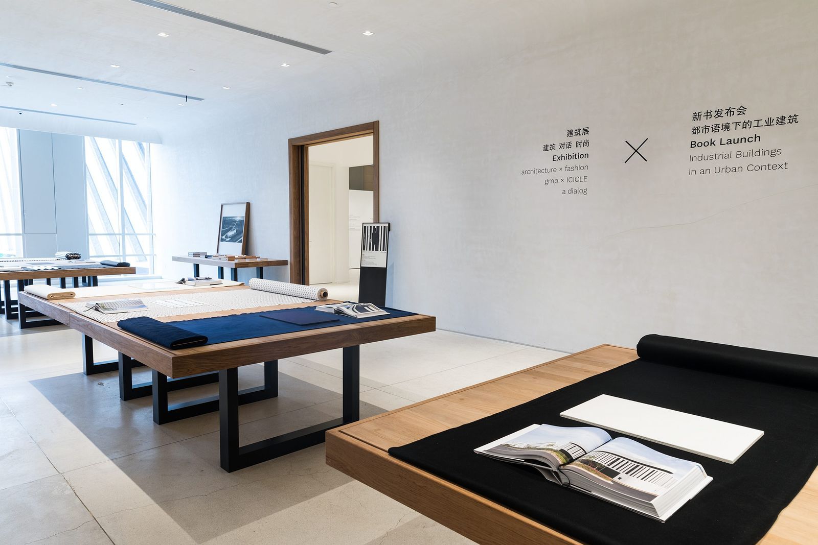 Zum Anlass der Buchpremiere präsentieren ICICLE und gmp Architekten eine Ausstellung im ICICLE Space, Shanghai. Einige Industrieprojekte aus dem Buch werden fotografisch Kleidern aus dem Hause ICICLE gegenübergestellt. Das erklärte Design-Ziel der beiden Disziplinen – Mode und Architektur – ist eine kompromisslose Fusion von Ästhetik und Funktion. Das harmonische Gleichgewicht dieser beiden Aspekte ist ein wichtiger Schwerpunkt in der Firmenphilosophie von gmp und ICICLE. Großformatige Fotos werden durch Fassadenmaterialien und Stoffproben ergänzt, um damit dem Besucher sowohl eine optische als auch eine haptische 1:1 Erfahrung der jeweiligen „Haut“ zu ermöglichen.