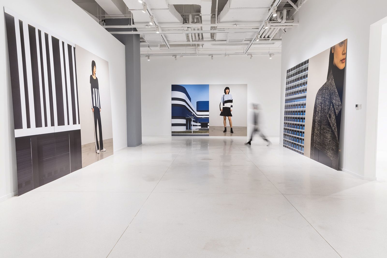 Das fotografische Medium verschleiert den Maßstab des jeweiligen Sujets. Damit ist die Möglichkeit gegeben, den natürlichen menschlichen Maßstab der Kleidung zu vergrößern und gleichzeitig die Architektur auf ein reduziertes, zweidimensionales Format zu verkleinern, so dass die zwei gestalterischen Berufe auf Augenhöhe verglichen werden können.