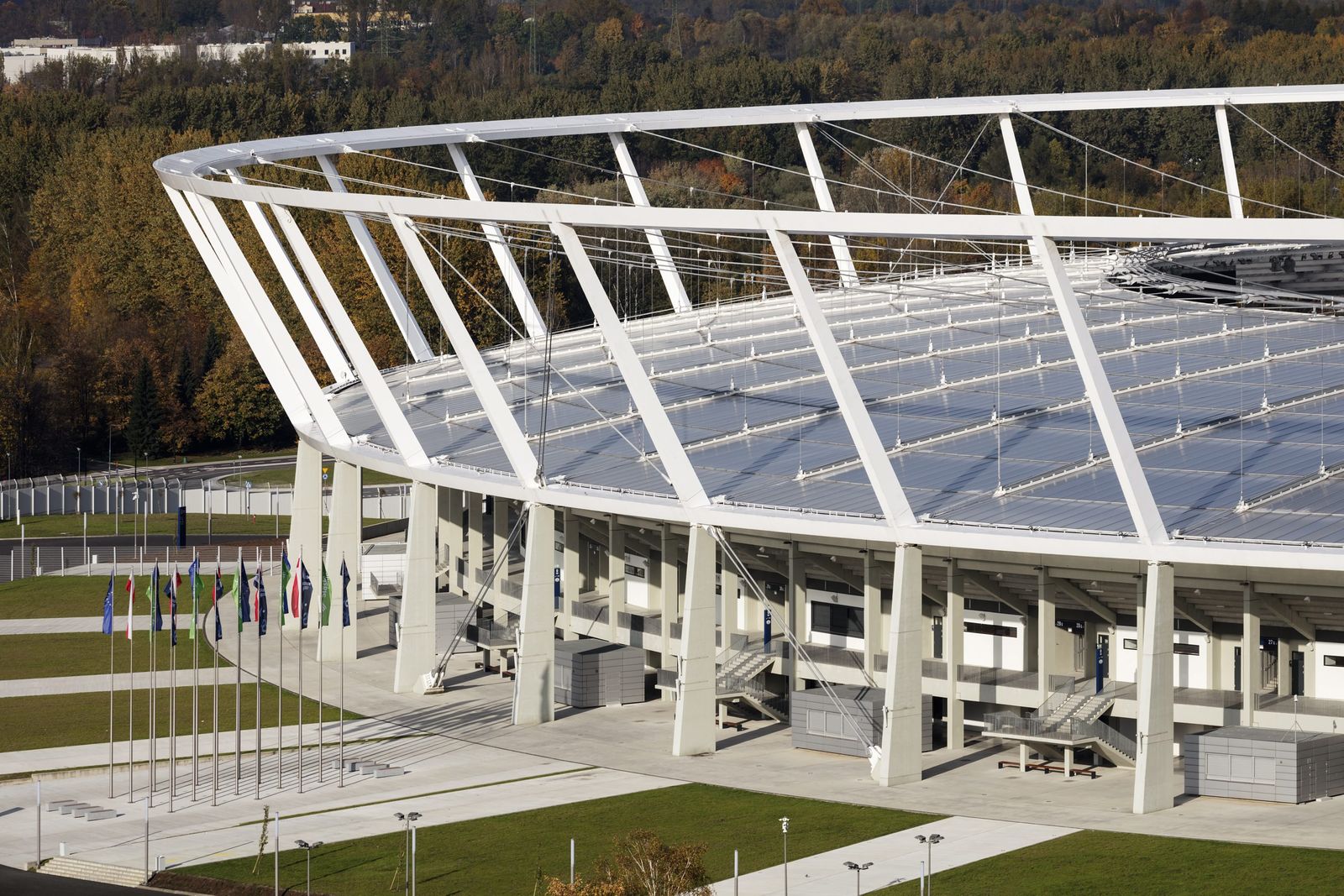 In the cultural and recreational park in Chorzów, Poland, the architects von Gerkan, Marg and Partners (gmp) have converted the Śląski stadium. Yesterday it has been officially inaugurated by a friendly match: On Tuesday, March 27, the Polish national squad played against Southkorea’s national team. With the completion of the venue the Silesian province has been given a new sports venue for track and field competitions to international standard. The elegant structure complements the historic building from 1956. With a total area of 43,000 square meters, the lightweight stadium roof is currently the largest European roof with a translucent polycarbonate skin.