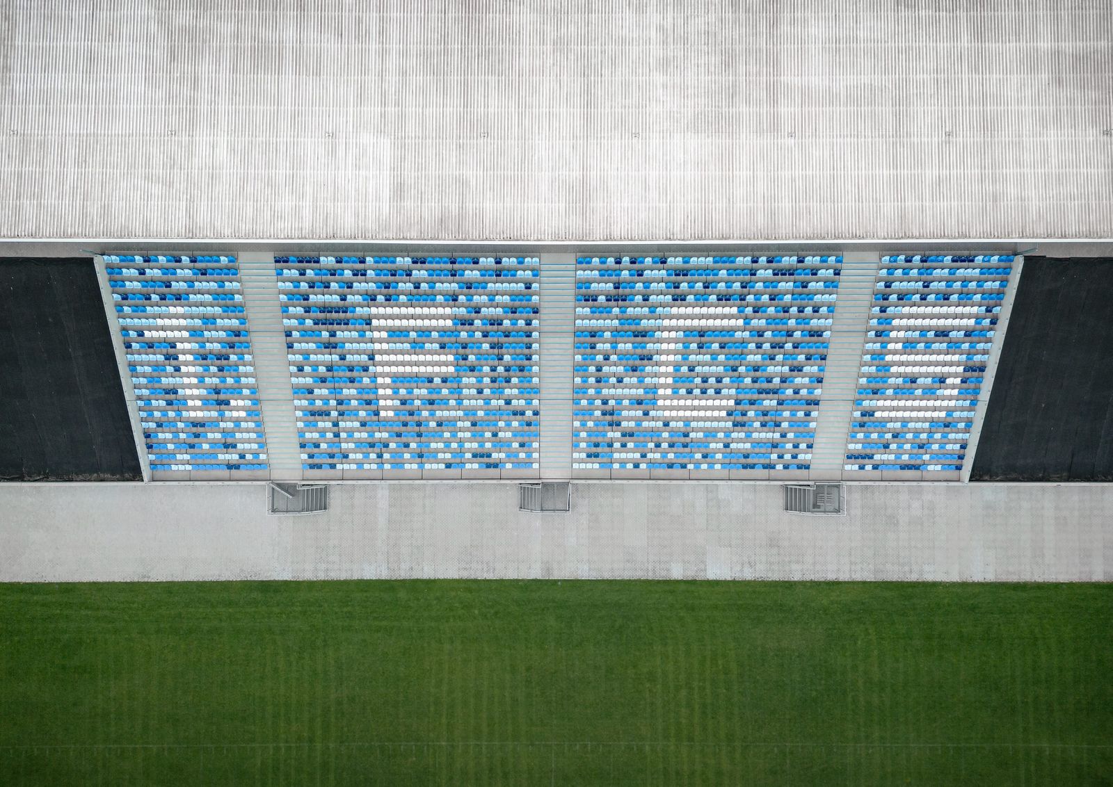 As part of the conversion to a pure football stadium, the track-and-field lanes were omitted so that the fans could be closer to the pitch. In order to strengthen the local identity, the roofed opposing grandstand - which dates from 1976 and is known as Victors’ Grandstand - and the floodlight masts, which can be seen from afar, have been retained as historical landmarks.