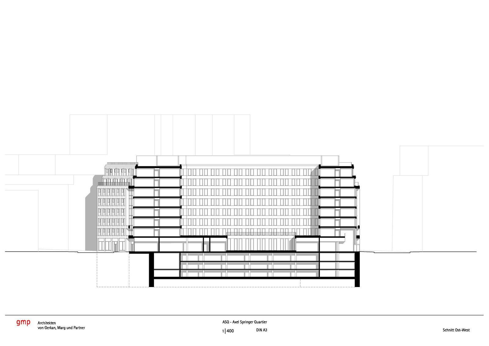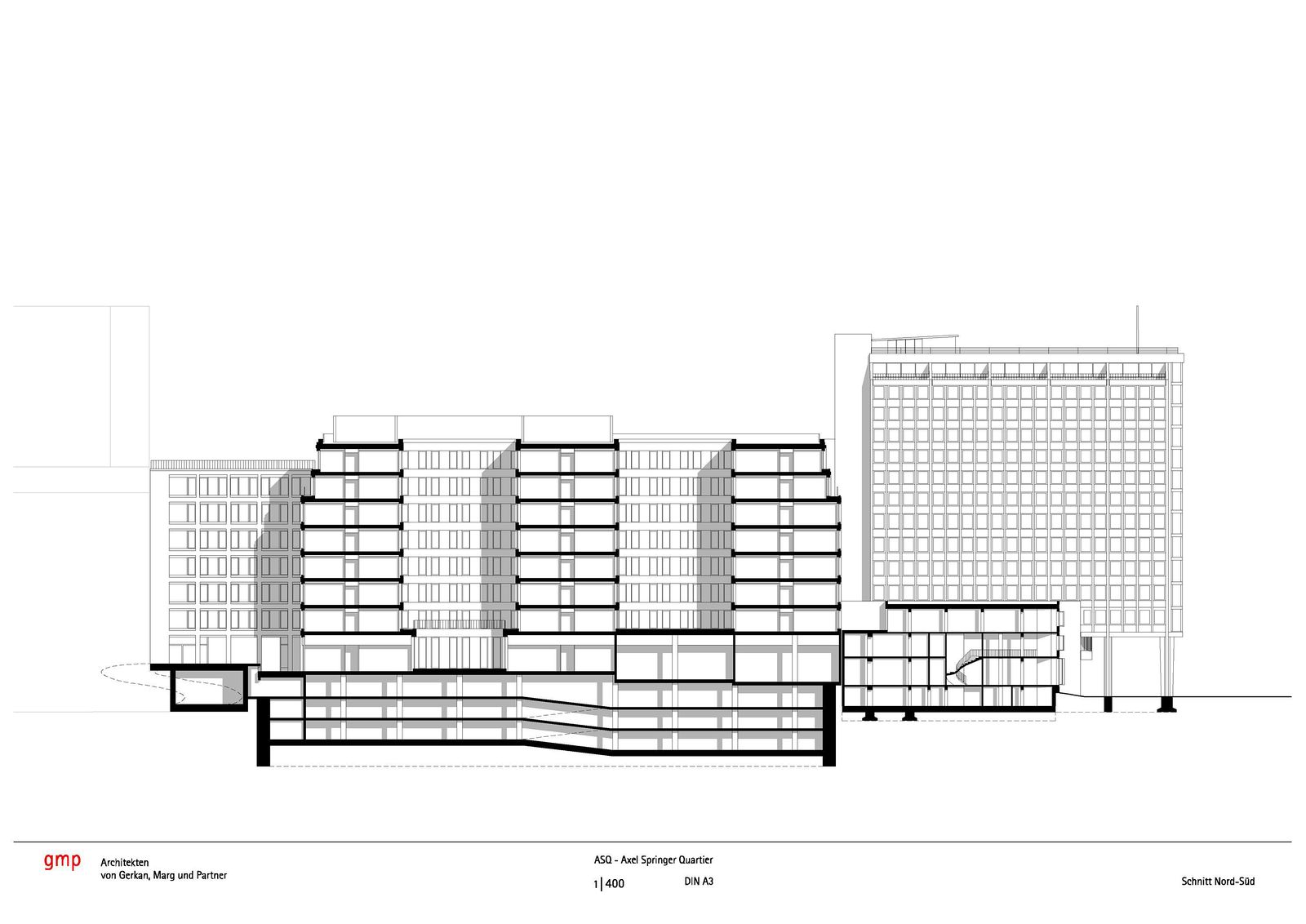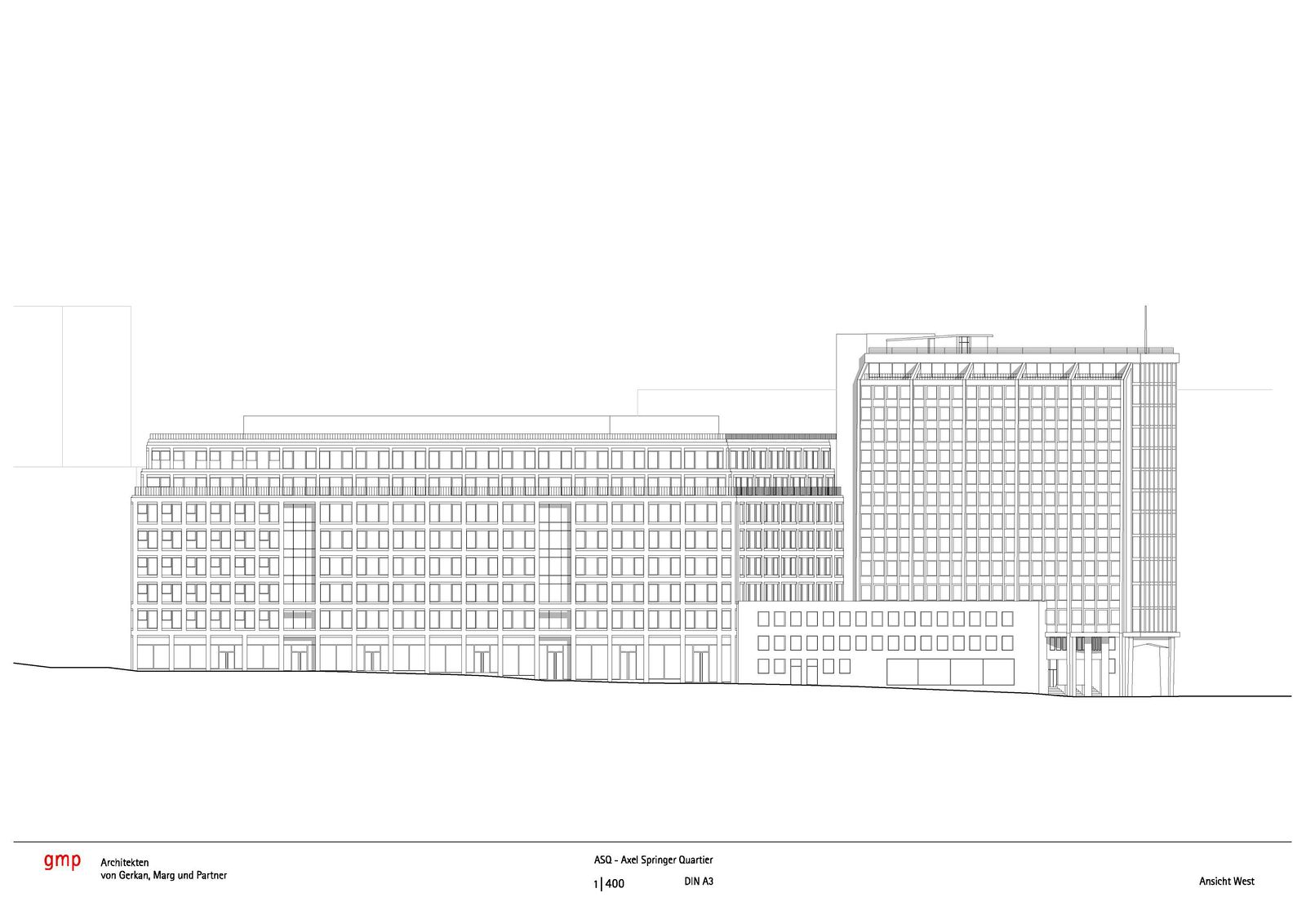 The Springer Quarter is currently being developed on the publisher’s former site in Hamburg’s inner city. The project consists of two distinct parts: the refurbishment of the listed high-rise building and the construction of an office building with commercial units with about 50,000 square meters of gross floor area above ground, both of which are carried out to designs by architects von Gerkan, Marg and Partners (gmp).