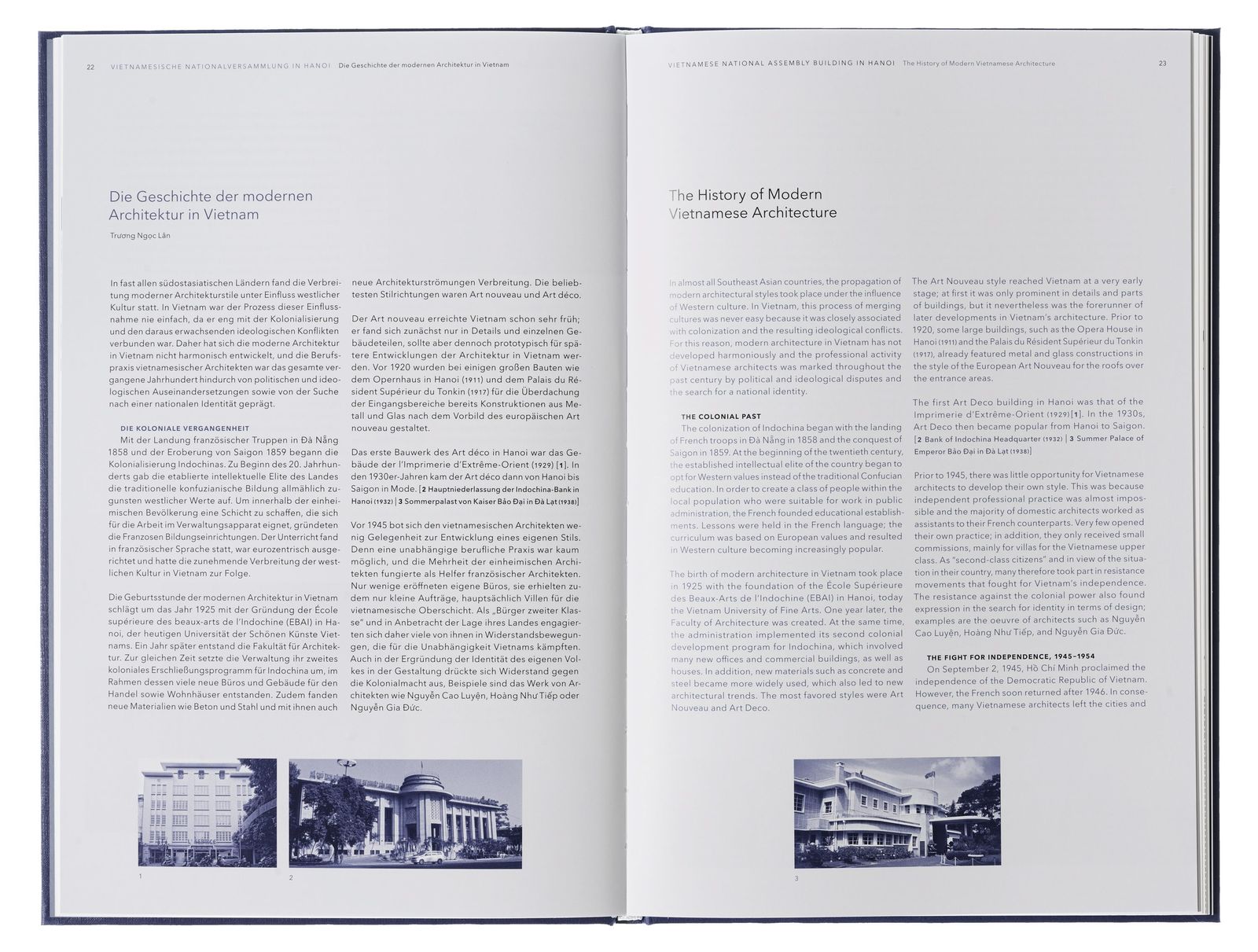 In this volume of the gmp FOCUS series, the architects convey through plans, images, and accompanying text, a vivid and detailed introduction to the Vietnamese National Assembly Building, awarded the Vietnamese National Prize for Architecture. A comprehensive essay offers an informative history of modern architecture in Vietnam.