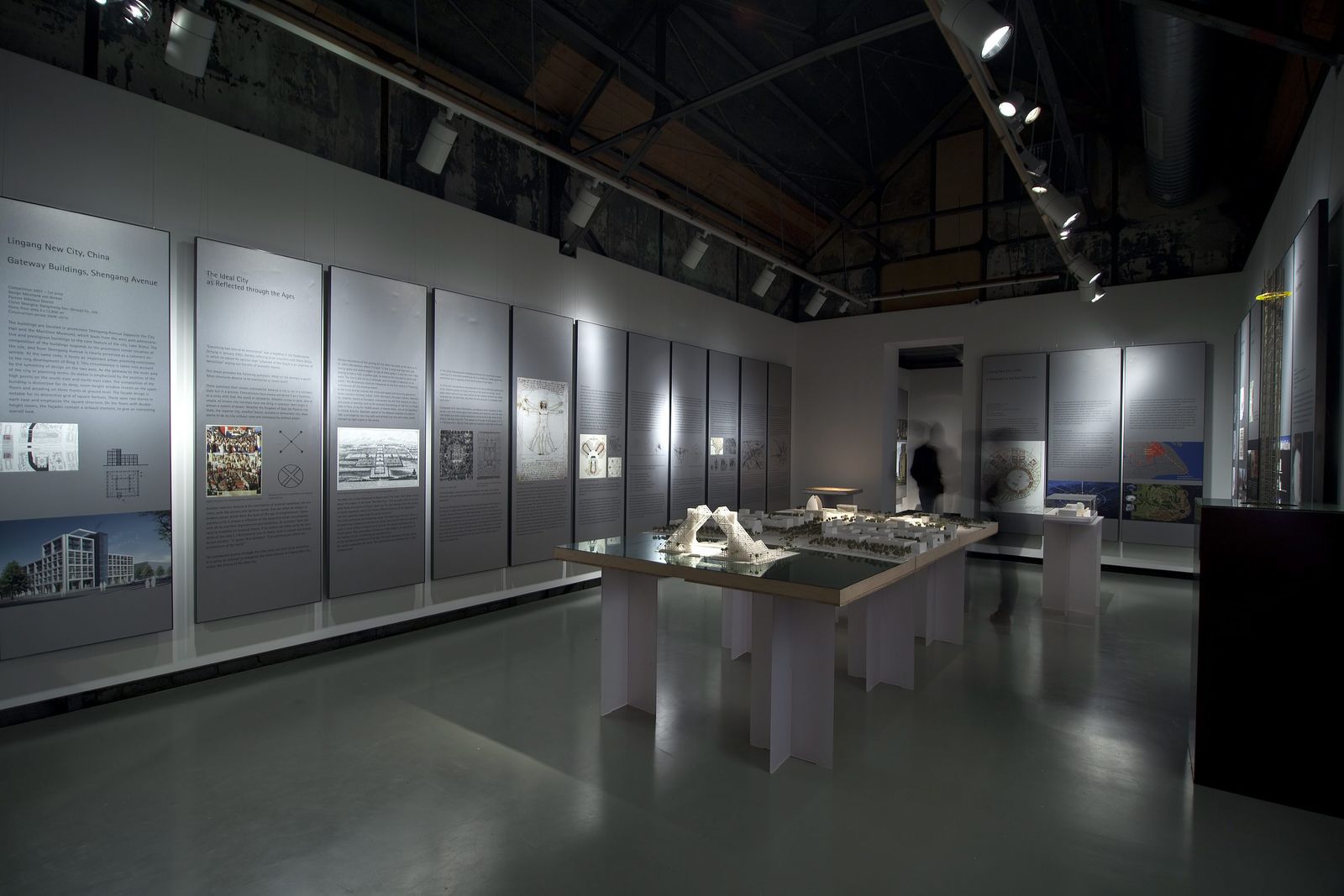 An illustrated introductory essay about the development of ideal cities as a reflection of the age leads on to the topic of the Lingang New City project in China. Given its size and importance, this urban planning scheme forms a focal point of the exhibition. The range of documentation extends from the first sketches via visualizations of the planned city to satellite images showing the progress of construction.
